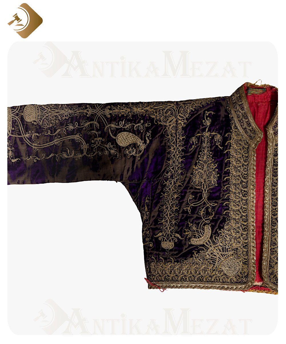 19. Yüzyıl İşlemeli, Mor Kadife Sertifikalı Osmanlı Ceketi