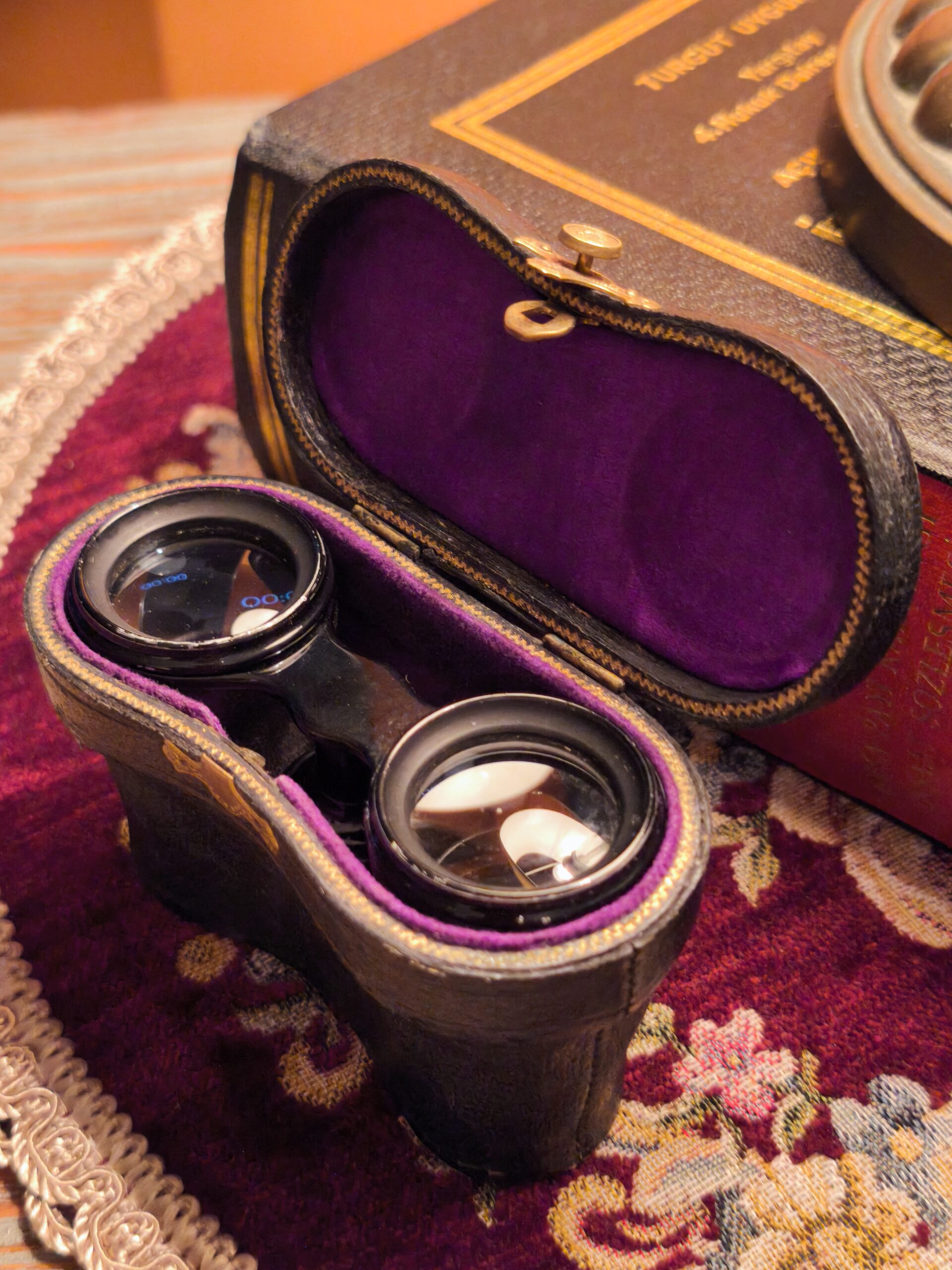 20.yy Fransız Opera Dürbünü. Lensleri hatasız. Asansör çalışıyor deri çantasında eksiksiz. 100 yıldan yaşlı. Bu Fransız döneminin en iyi markası