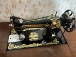 Antika çalışır durumda liberty dikiş makinası özellikle boya, işlemeler ve masa kısmı büyük ölçüde korunmuş çalışır durumda