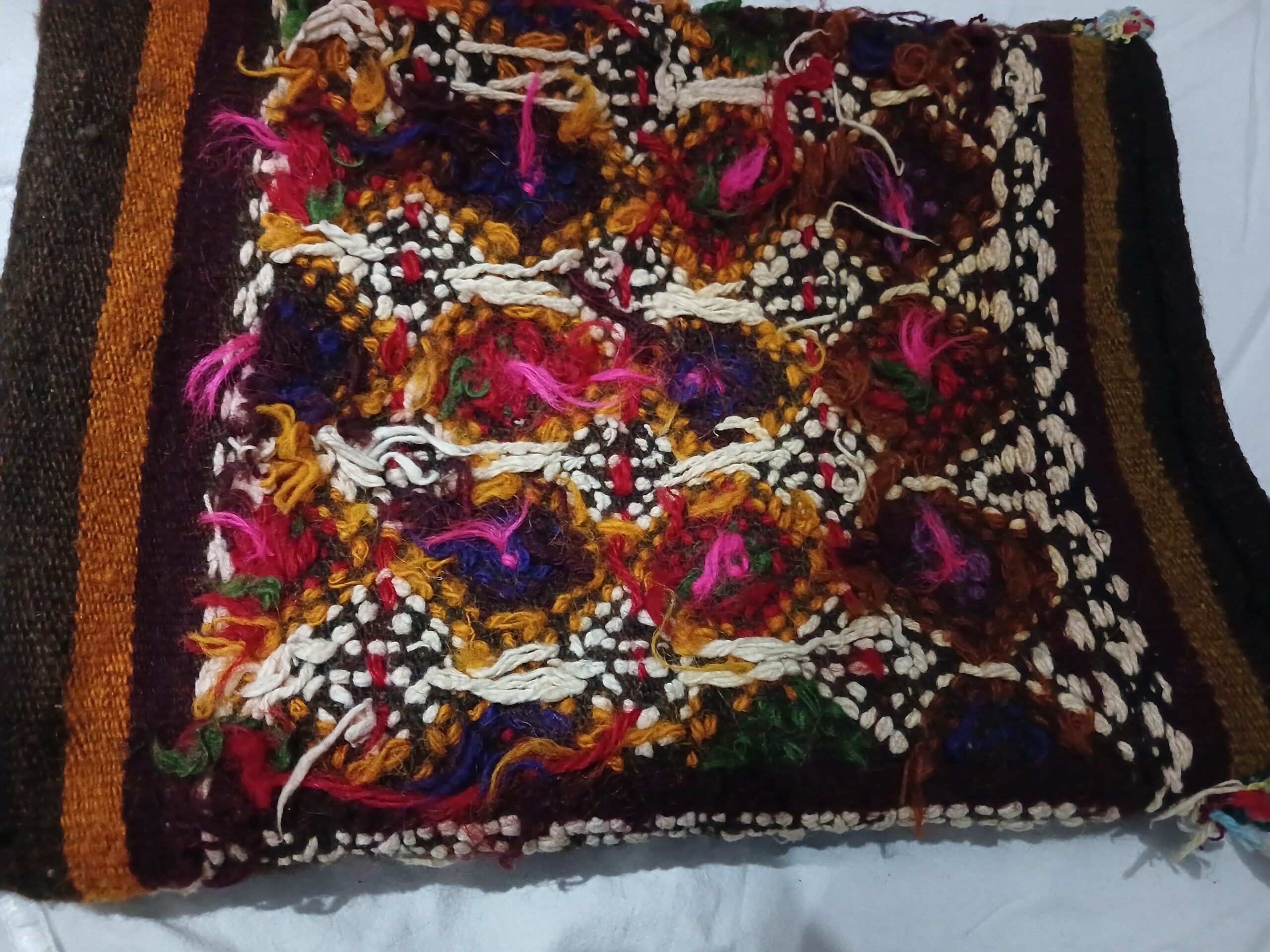 Bu heybe bizzat babaannem tarafindan koyun yünleri iplik yapılmış kök boyalarla boyanmış ve tahta dokuma tezgahında kendi tarafından dokunmuştur. Babannemin çeyizinden bir parça yaklaşık 100, 150 yıllık.
