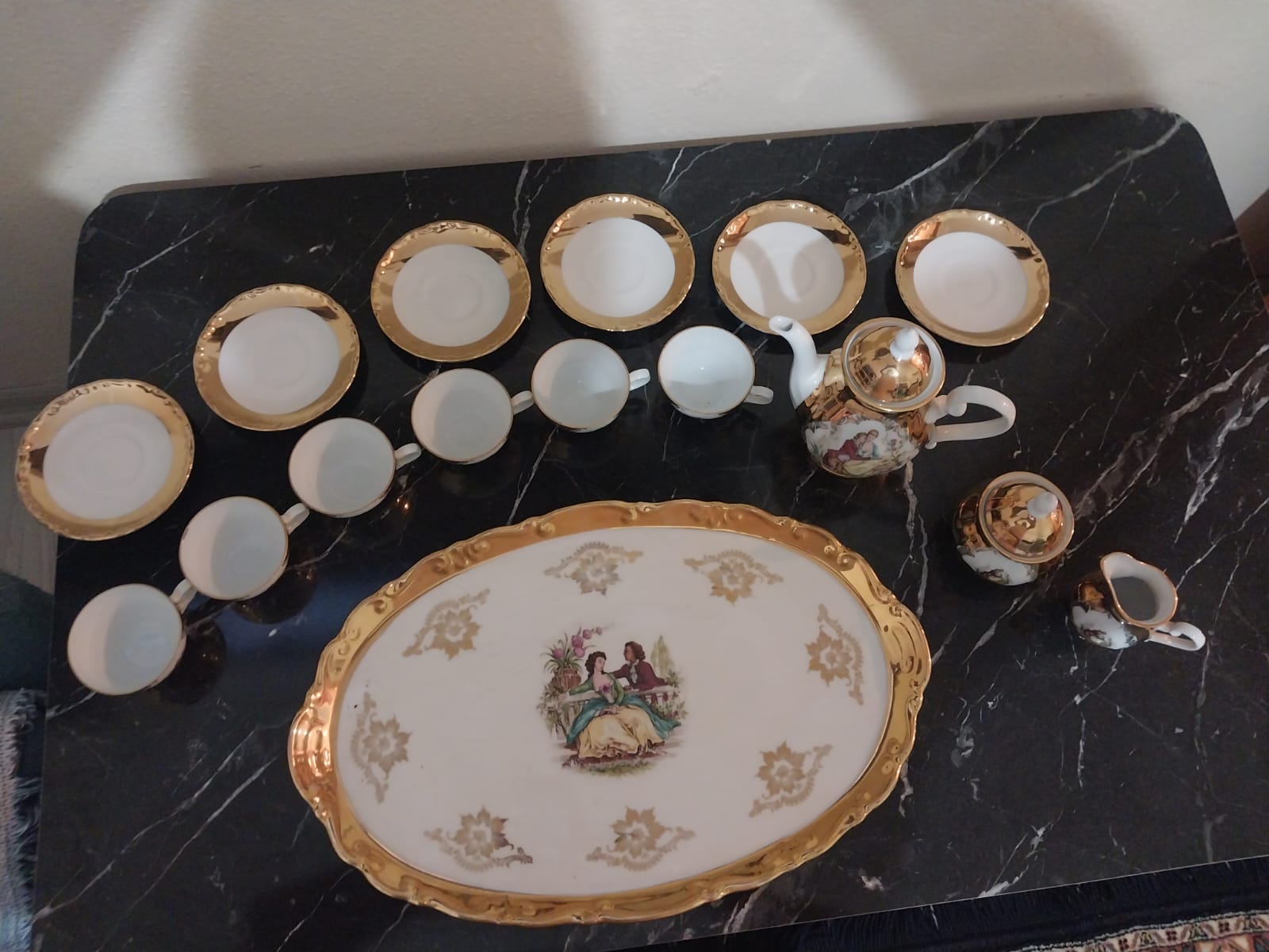 Bavaria 22 karat gold süt takımı. Alman markası sıfır 50 yıllık hiç kullanılmadı kırık veya eksik parçası yoktur vitrin ürünü olarak muhafaza edildi .