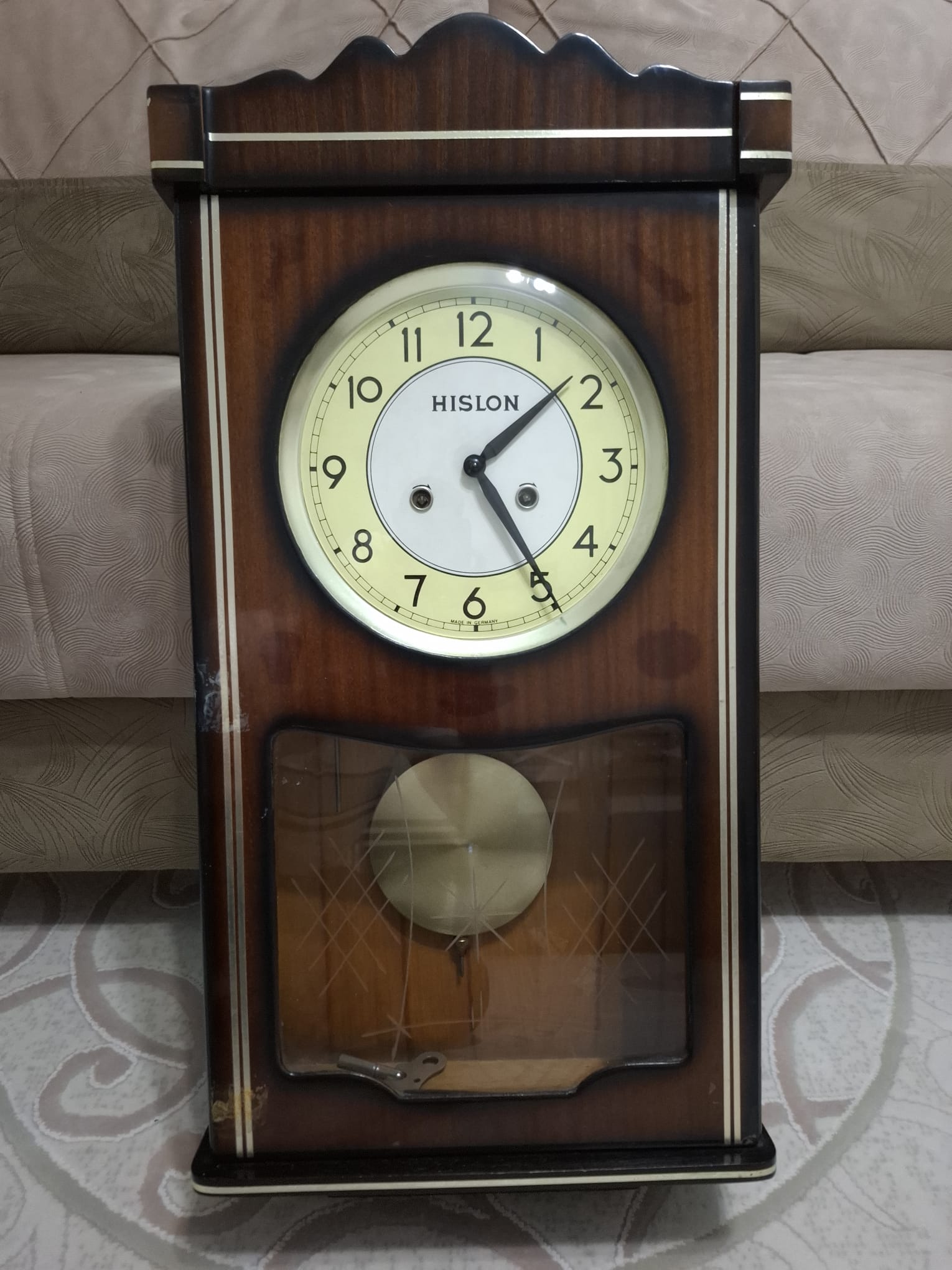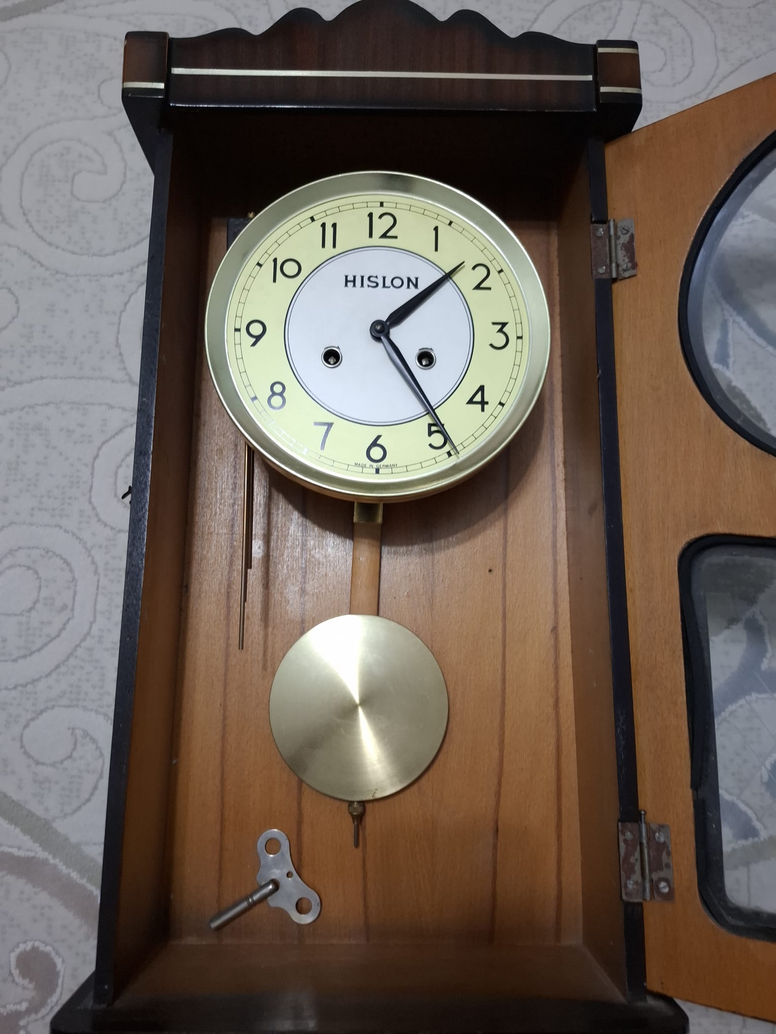 Hislon Kurmalı Antika Duvar Saati – Alman Mekanizma – Sarkaç ve Anahtarı tam