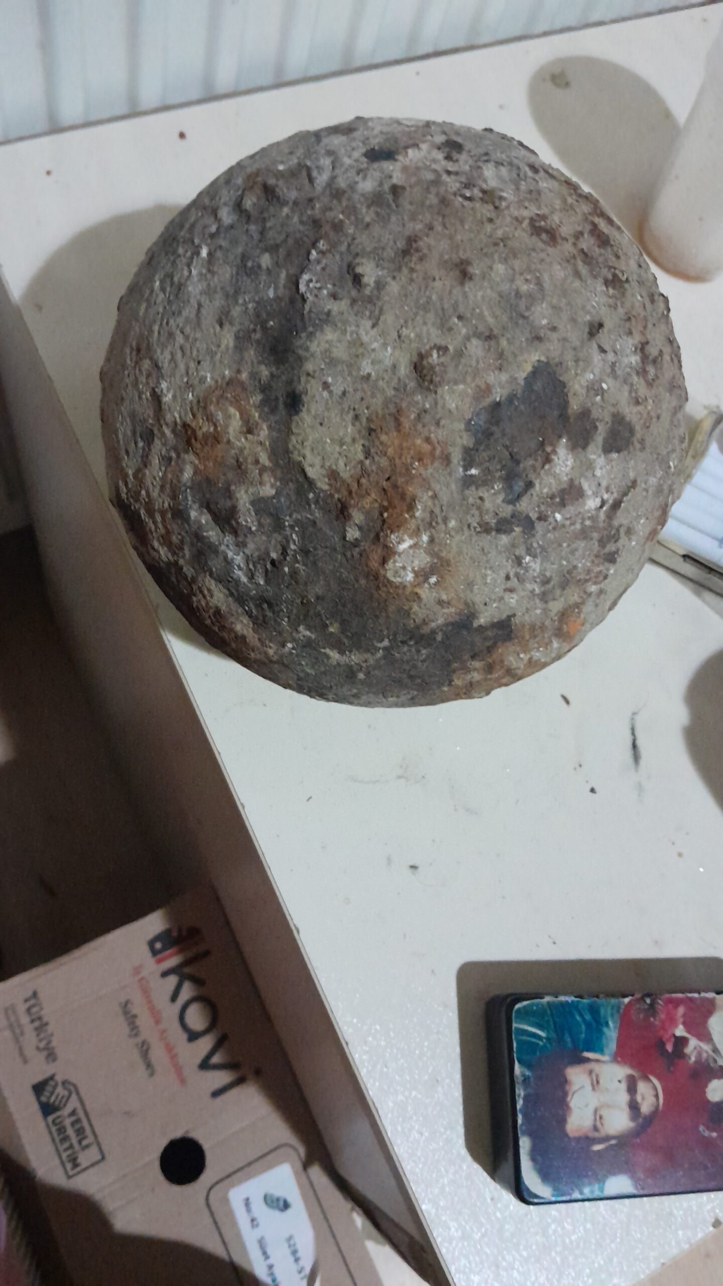 Bu gerçekten çok özel bir parça! Edirne’de Osmanlı dönemine ait eski bir askeri hastane yakınında bulunmuş, yaklaşık 500–600 yıllık olduğu tahmin edilen, 15 cm çapında ve 15 kg ağırlığında dökme demir bir top güllesi… Koleksiyoncuların bayılacağı türden bir obje.