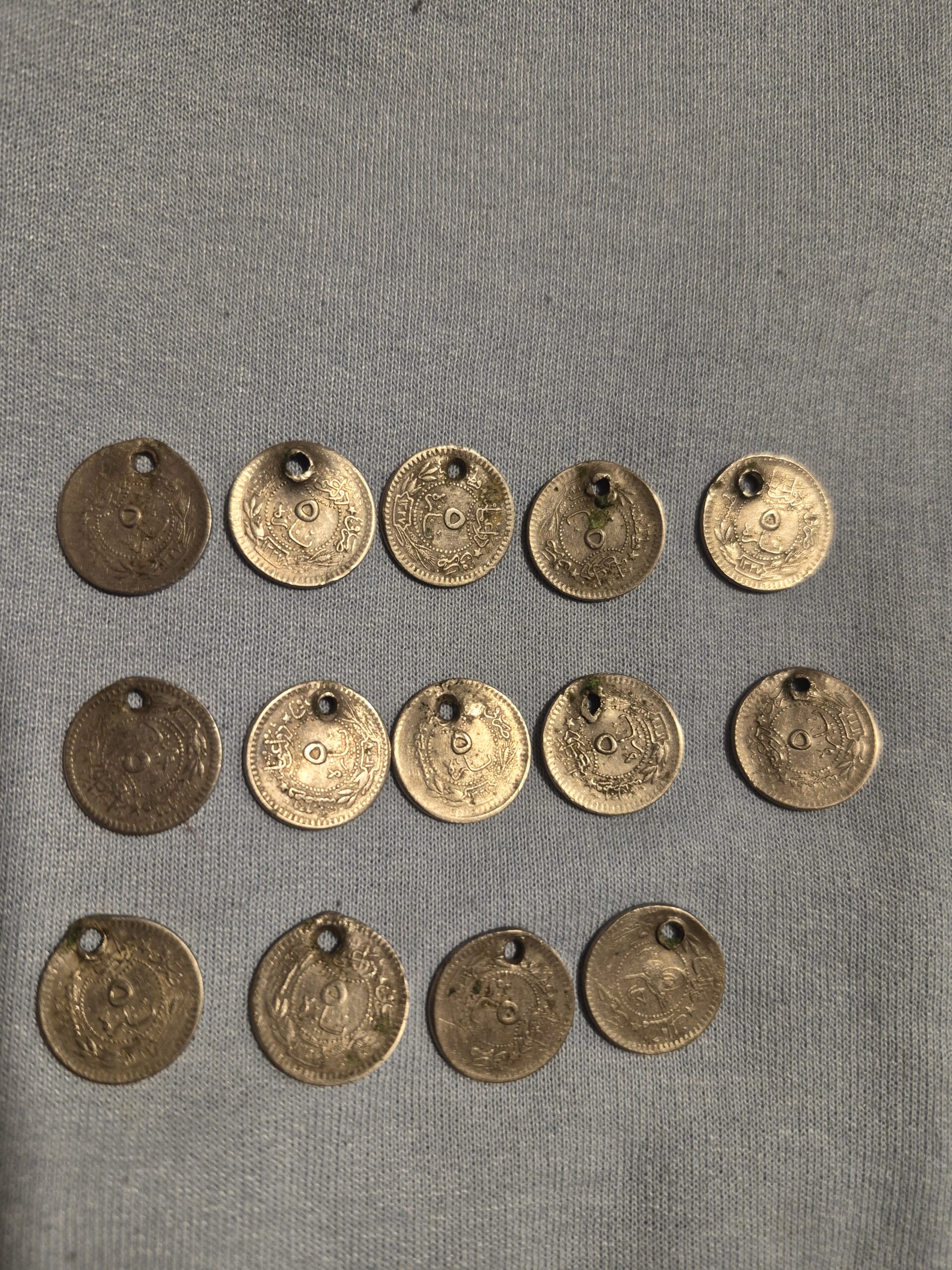 Osmanlı dönemine ait antika 1327 basımli 5 para . Elimde 14 adet vardır. Deliklidir. Görsellerle birebir aynıdır.