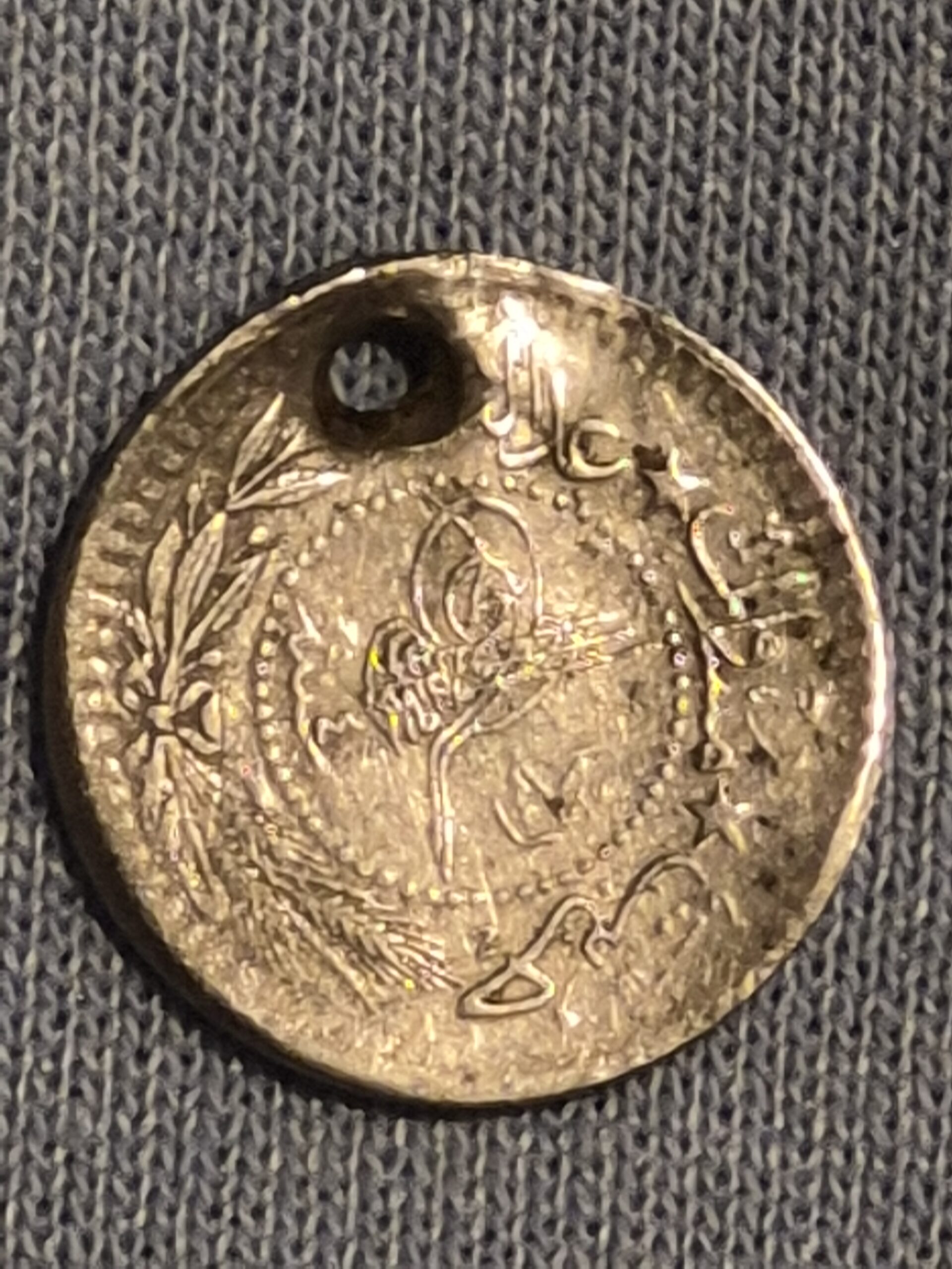 Osmanlı dönemine ait antika 1327 basımli 5 para . Elimde 14 adet vardır. Deliklidir. Görsellerle birebir aynıdır. Osmanlı döneminde paralar ceb olmadığı için delinerek boyna takılarak saklandığı için delikli olarak kullanılırmış